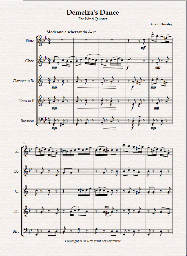 Demelza's Dance for Wind Quintet.