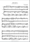 Originally in C sharp major- it has been arranged into D major for 2 violins and piano. The parts are fairly equal throughout and the top note is top F natural which appears just once- the rest of the score is mainly on the stave. Bowing is left to the performer.