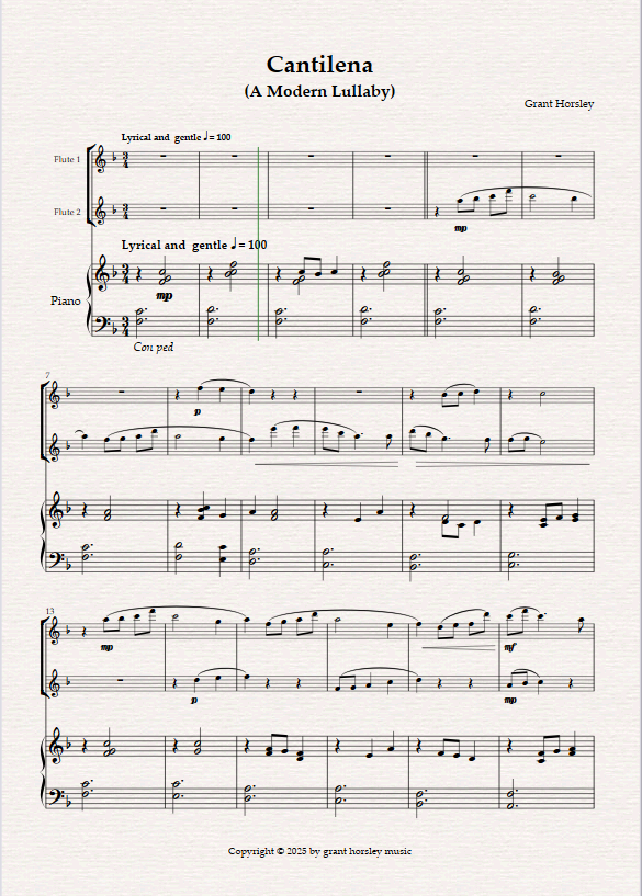 Cantilena. (A Modern Lullaby) for Flute Duet and Piano.