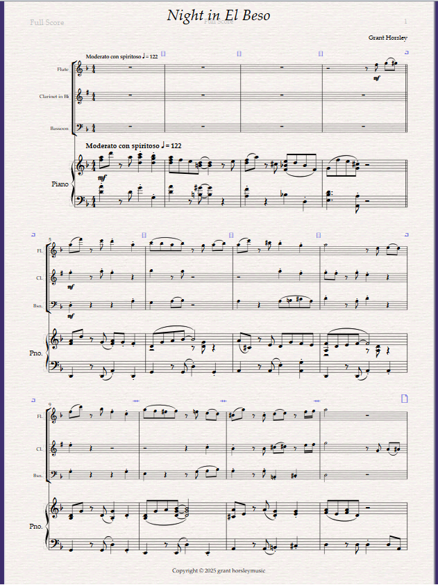 Night in El Beso. A Tango for Wind Trio (Flute, Clarinet, Bassoon) and Piano.