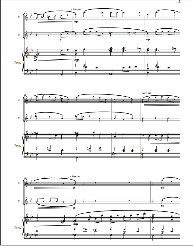 I've used some French and even some jazzier type chords such as minor 9th's, Major 7th's, 7th's with flat 5th etc within the piece to keep the harmonies interesting, but aimed to keep a gentle melody flowing throughout. The instrumental parts are pretty evenly distributed, and the piece should be played with a good amount of rubato with plenty of emotion.
