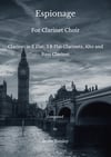 Espionage, scored for Clarinet in E flat, 3 B flat Clarinets, Alto and Bass Clarinet. It is a descriptive exciting piece, and the intention was to make it mysterious in style with a film-like storyline flowing through it.
