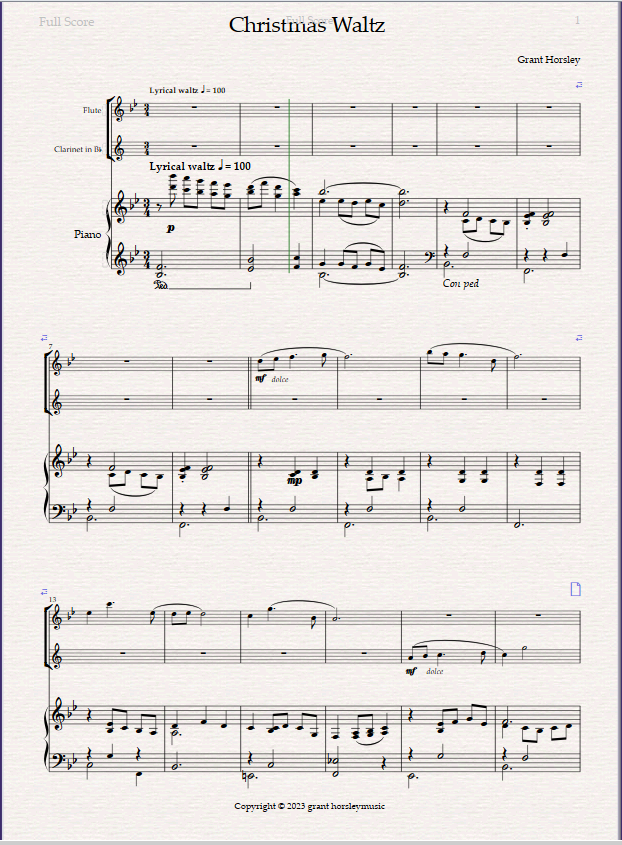 Christmas Waltz For Flute, Clarinet and Piano.
