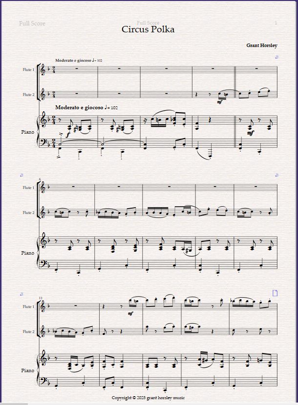 Circus Polka for Flute Duet and Piano.